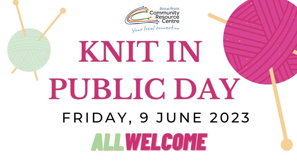 Knit in Public Day, Boyup Brook CRC, South Bunbury, 9 June 2023, June 11th is world wide knit in public day.
