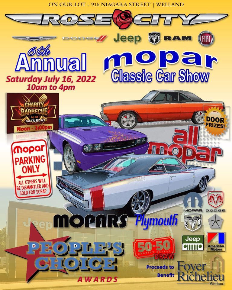 6th Annual Mopar Classic Car Show, 916 Niagara St N, Welland, ON L3C, The carlisle chrysler nationals is back for more in 2025. May 15, 2025 5:04 pm pt.